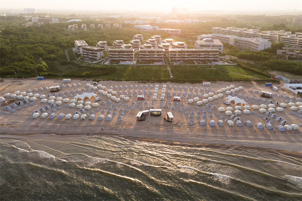 光的指引让艺术生长出更多可能性,「Migration with Light 向光迁徙」之旅也由光开启。现场,欧普照明与 300 位艺术家共启「光之初生」点亮仪式,为活动拉开序幕。在这 300 个小时里,人们回归自然的节律,在清晨的第一缕阳光中苏醒,在海浪的起伏声中入眠。光的功能性在这里被艺术化地表达,将人们带入一个科技与自然交叠的和谐世界。