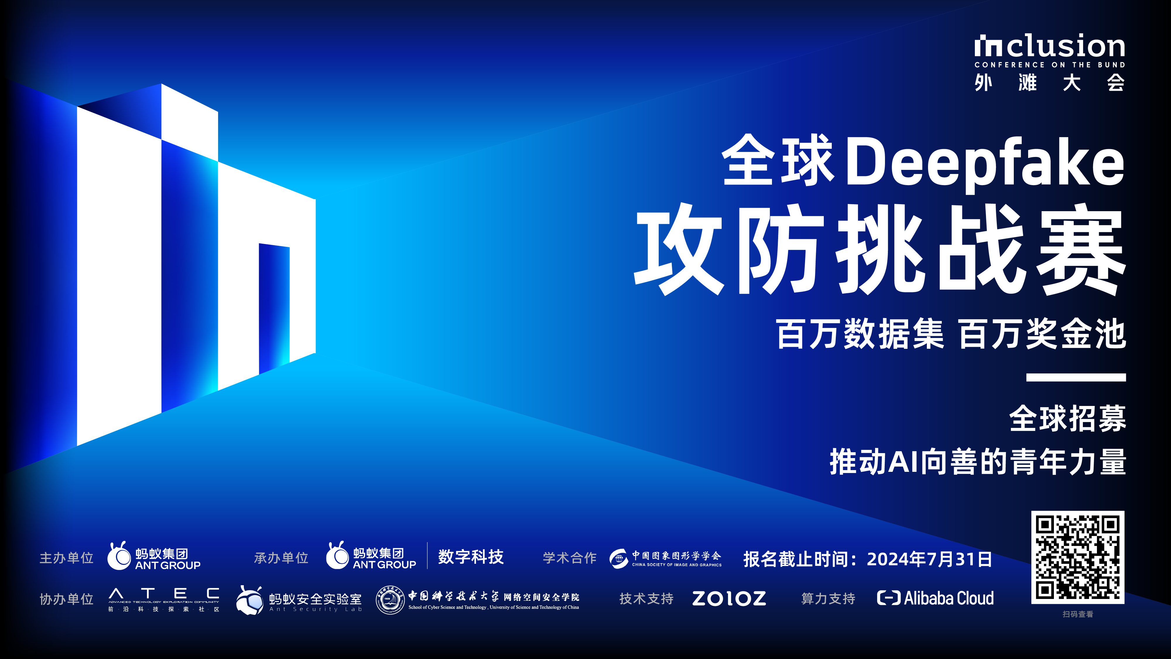 大赛由蚂蚁集团主办、蚂蚁数科承办,ATEC 前沿科技探索社区、蚂蚁安全实验室、中国科学技术大学网络空间安全学院作为联合协办方,在线身份认证服务商 ZOLOZ 提供技术支持,阿里云提供算力支持。该赛事在全球知名的数据科学竞赛平台 Kaggle 进行,各赛道决赛前三名的赛队将受邀前往位于上海的 INCLUSION·外滩大会现场领奖,并参与表演赛。