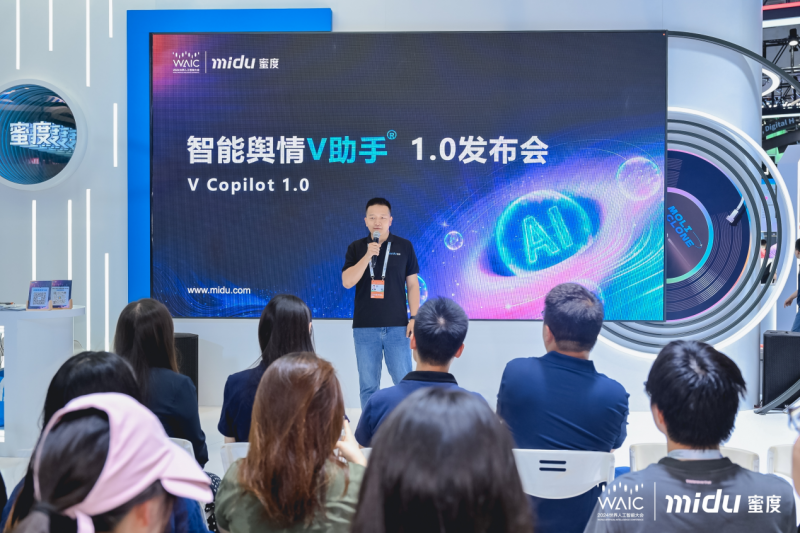 7 月 4 日,语言智能和垂直大模型企业蜜度在世界人工智能大会上重磅发布了升级后的蜜巢政务大模型 3.0。7 月 4 日,基于蜜巢 3.0 的智能应用产品——智能舆情 V 助手 1.0 也在 WAIC 2024 活动中闪亮登场,为舆情分析领域带来智能、高效的全新体验。