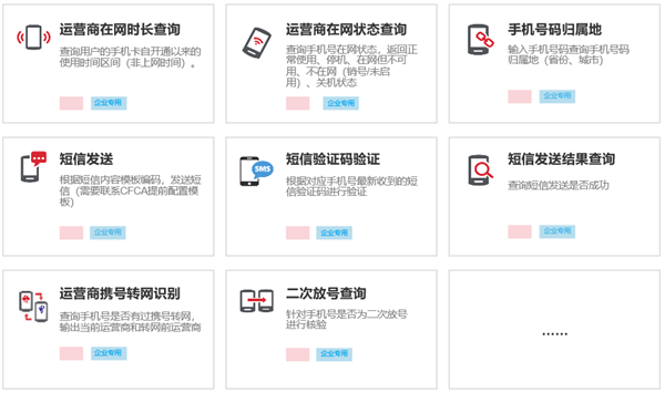 CFCA 安心验产品以可信身份认证技术为核心,直连运营商数据资源,实现了包括运营商在网时长查询、运营商在网状态查询、手机号码归属地查询、携号转网查询、二次放号查询等验证查询服务,以及短信发送和短信验证码核验功能。