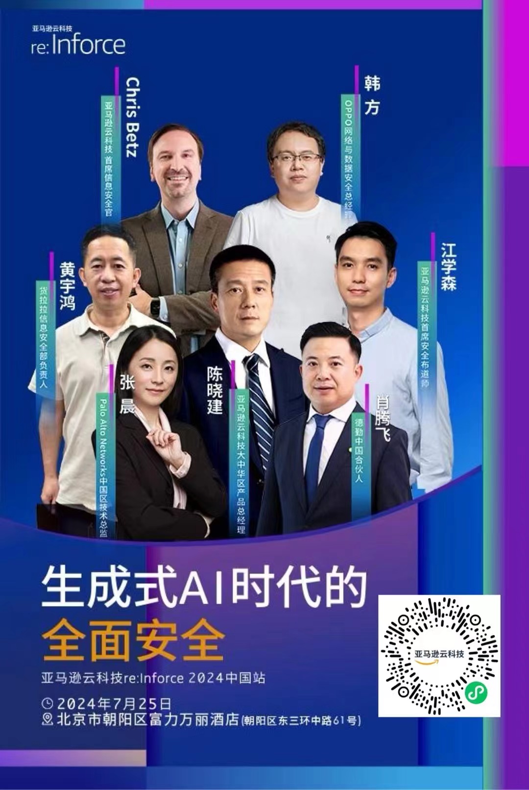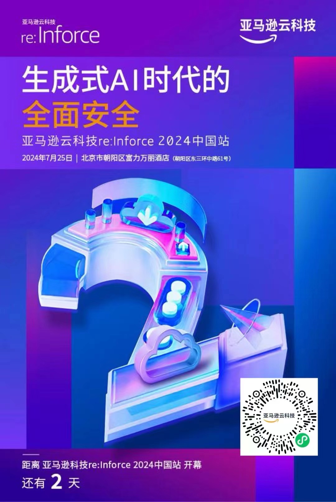 安全出海 才是蓝海!亚马逊云科技 re:Inforce 2024中国站即将拉开帷幕!拉风的极客2024/07/23摘要7月25日,北京富力万丽酒店,上午9:30用AI→安全地用AI 安全地上云→用AI云 7月25日,北京富力万丽酒店,上午9:30。线上同步直播主会场! 亚马逊云科技 re:Inforce 2024中国站即将拉开帷幕!将汇聚顶尖安全专家、行业领袖和创新者,共同探讨生成式 AI 创新时代、云安全的前沿趋势和实践。 ai亚马逊云科技生成式 AI分享至