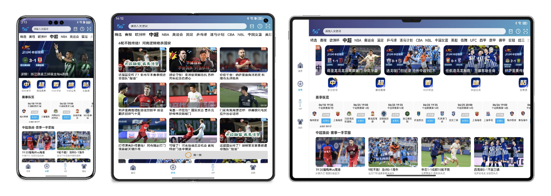 针对折叠屏手机,鸿蒙原生版咪咕视频接入了 HarmonyOS NEXT 的 FoldStack 组件和 Display 屏幕状态监听技术,可以识别折叠屏手机的弯折角度,实现悬停状态下的页面布局自适应,合理利用显示空间。同时,鸿蒙原生版咪咕视频为平板的大屏适配了键鼠操作,让点选更精准、操作更便捷。再配合适配多端的内容展示、播放组件,鸿蒙原生版咪咕视频可充分发挥不同设备的优势,实现更好的体验。