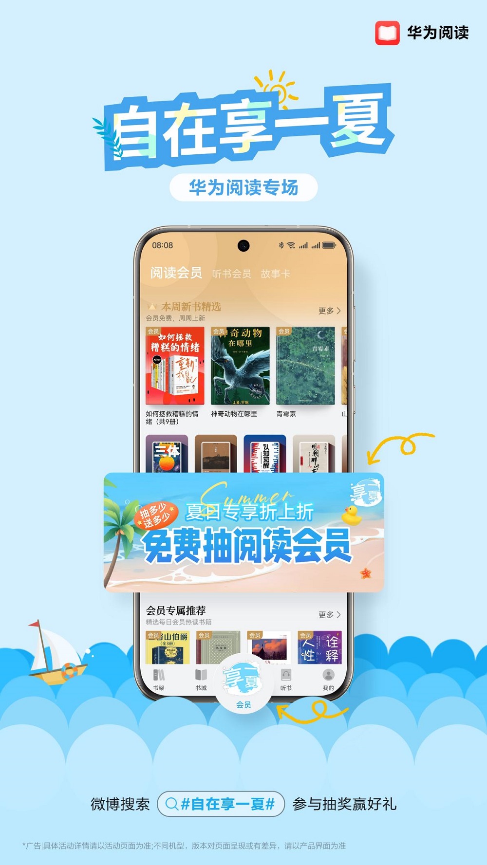 与此同时,大家也记得参加华为「自在享一夏」微博打卡活动华为阅读专场。只需打开华为阅读 App 点击底栏的「会员」按钮,找到「享一夏」图标并截图,然后在微博搜索 # 自在享一夏 # 话题,进入活动主页点击「去打卡」按钮,上传截图并带话题词 # 自在享一夏 # 发布 50 字以上微博,就有机会获取 HUAWEI Pura 70 Pro 、HUAWEI WATCH 4、HUAWEI MatePad 11.5''S 、HUAWEI FreeClip 耳夹耳机及华为音乐年卡、月卡会员等夏日好礼。活动持续到 8 月 31 日,大家记得别错过!