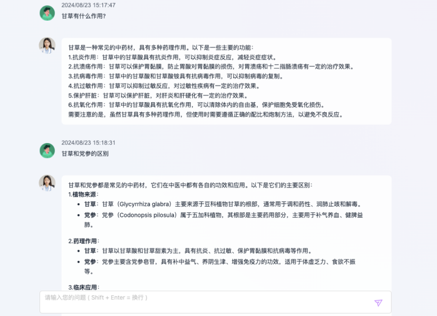 这些功能的实用性不言而喻。对于普通用户来说,他们可以通过 「智草」 大模型了解中草药的功效和用法,获取个性化的养生建议,更好地管理自己的健康。对于医生和科研人员来说,「智草」 大模型可以帮助他们更快速地诊断疾病,制定更加精准的治疗方案,提高医疗效率和质量。