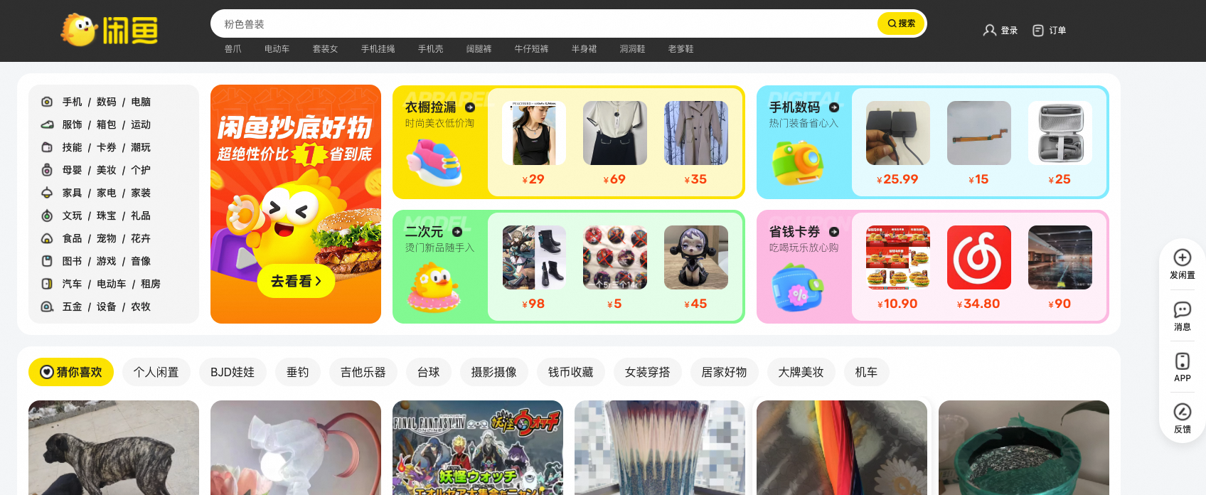 闲鱼网页版设置了超过 30 个分类导航,为消费者提供更精准的商品内容。相关工作人员介绍,闲鱼网页版上二次元相关商品和数码 3C 是当下更受欢迎的品类,这或与闲鱼的用户偏向年轻化有关。公开资料显示,闲鱼用户已经突破 5 亿,其中 95 后用户占比 43%,00 后占比 22%。