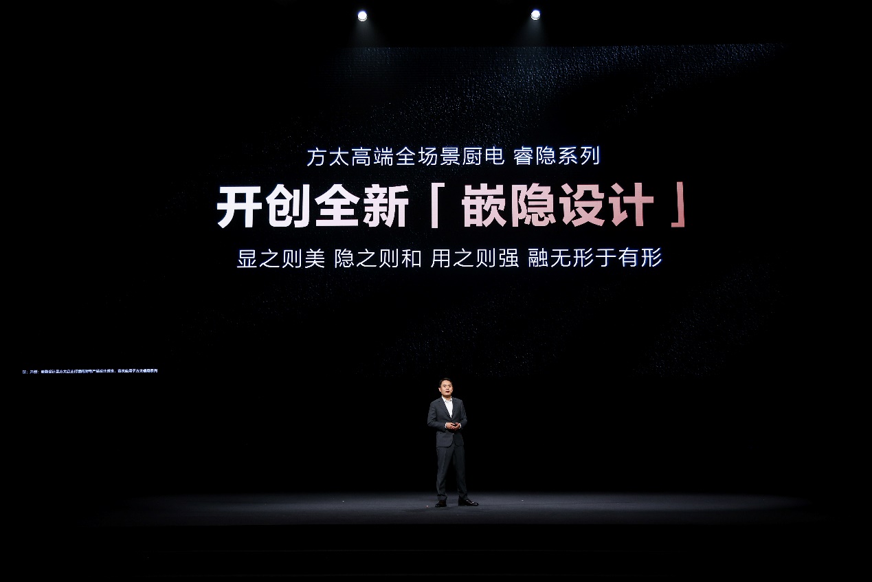站在厨电行业的前沿,方太深入洞察厨电全场景趋势,推动产品向更高层次的专业化、数据化和场景化发展,致力于引领未来十年中国厨房的无限想象。大会现场,方太睿隐系列产品总负责人贾博贤正式发布全新高端全场景厨电睿隐系列,并推出全球首款AI健康烹饪系统Healthy CookingGPT,开创嵌隐设计理念,让用户畅享驾驭烹饪的每一时刻,实现更健康、环保、高效、智慧、有品位的厨居生活。