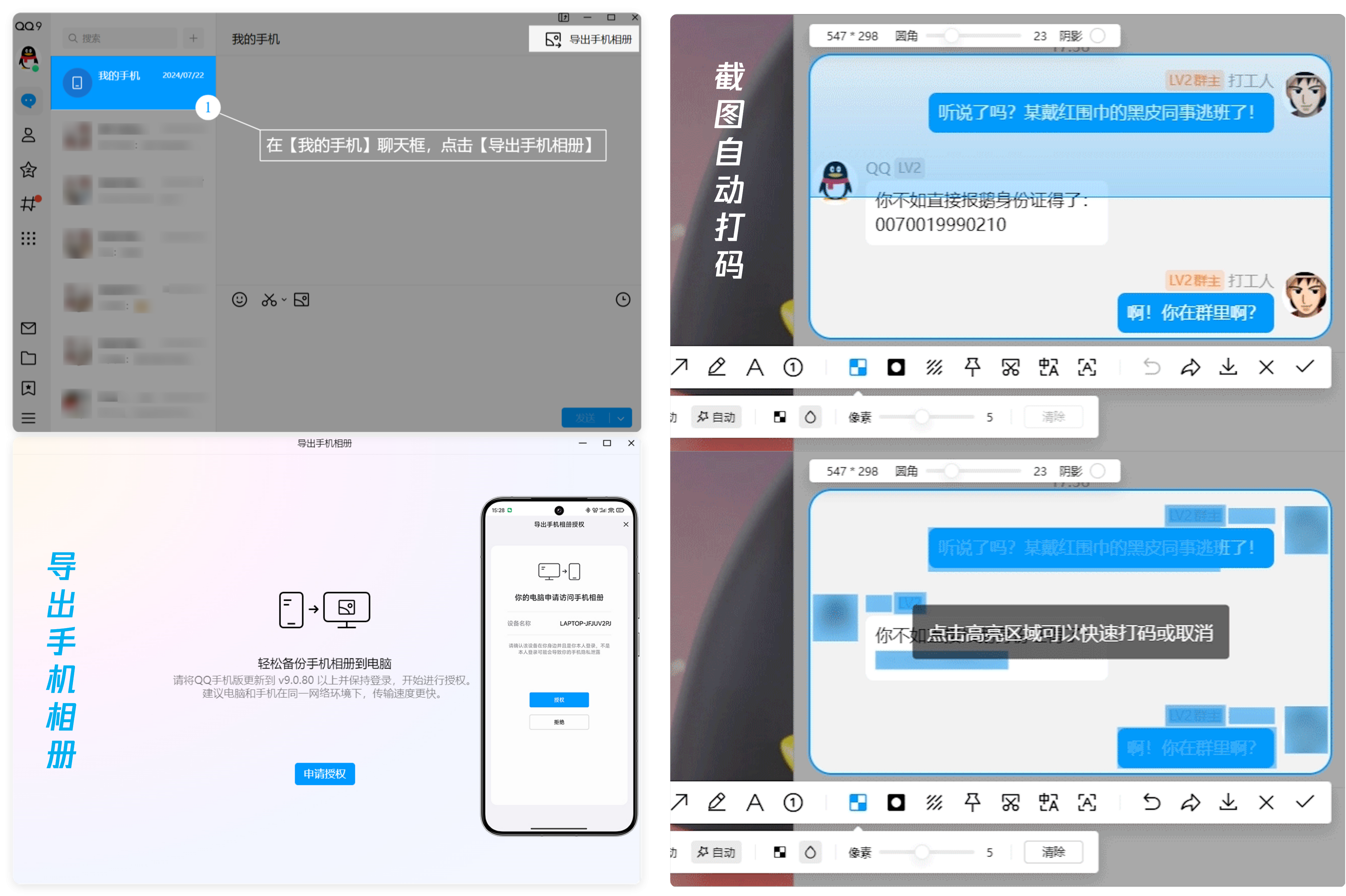 导出手机相册功能及截图自动打码功能
