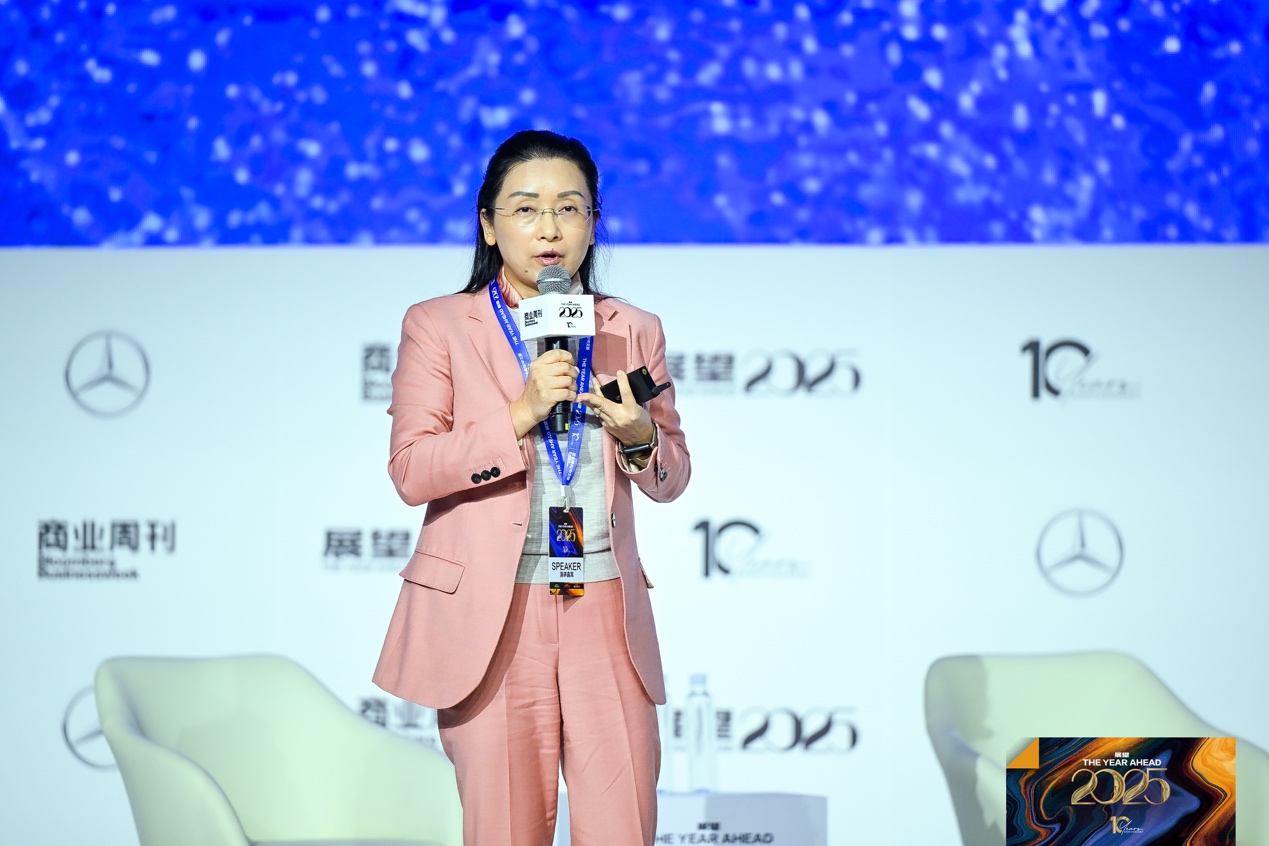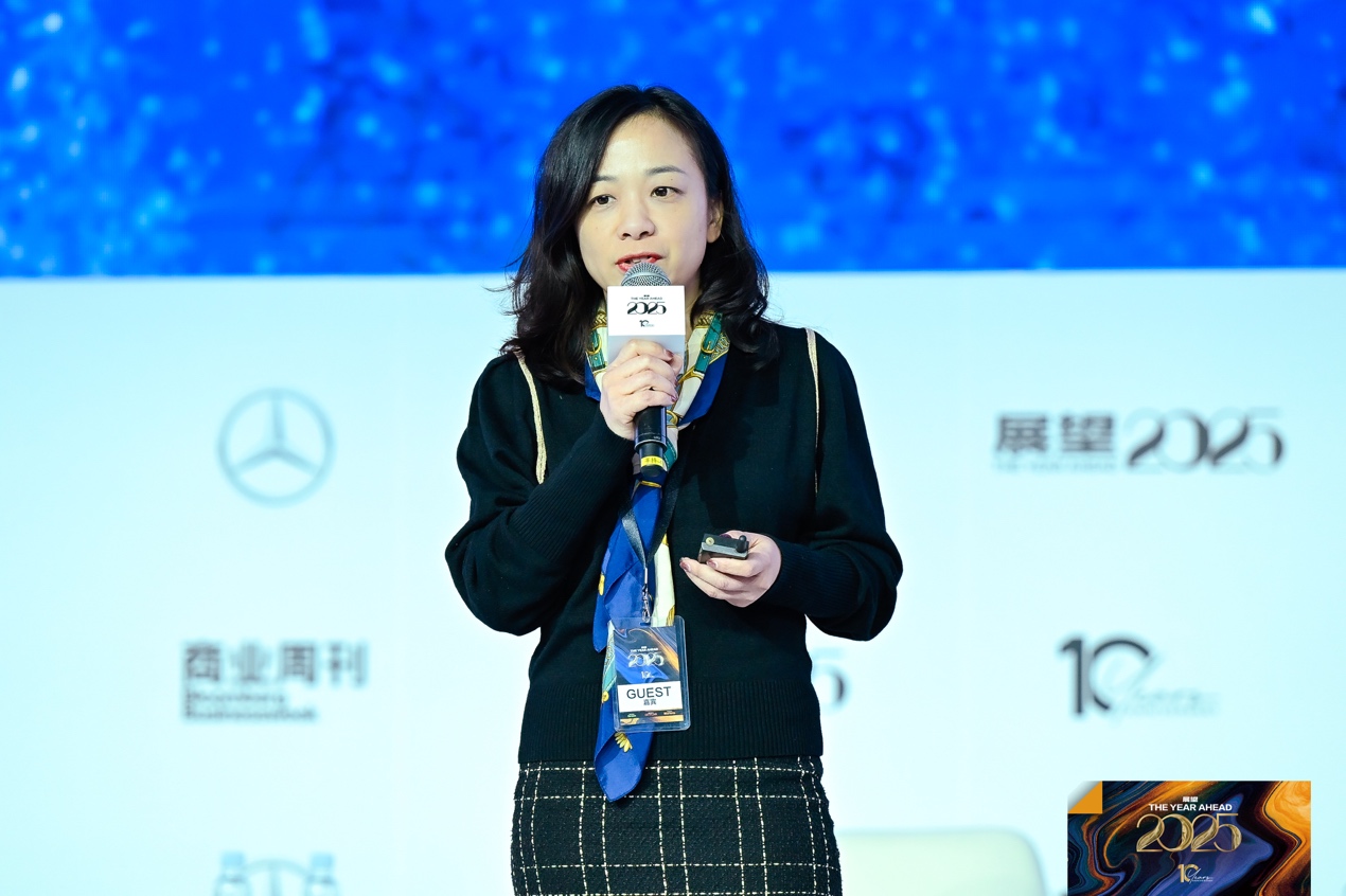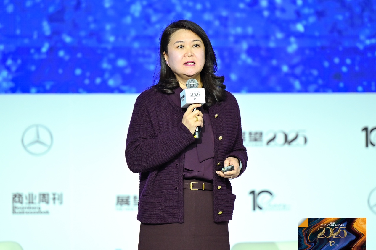 今年展望峰会的第一个正式环节,彭博亚太区首席经济学家舒畅做了《经济展望》的主题演讲。她从宏观角度分析了2025年国内外主要经济环境,并向大家分享了对于中国2025年经济增长的预测。她表示,2024年中国经济将增长4.9%,实现政府”5%左右”的经济增长目标,2025年增幅将达到4.5%。“明年政府可能将经济增长目标设定为4.5%-5%这个区间。2025年中国经济增长主要取决于国内经济刺激措施以及美国对中国的关税政策。”