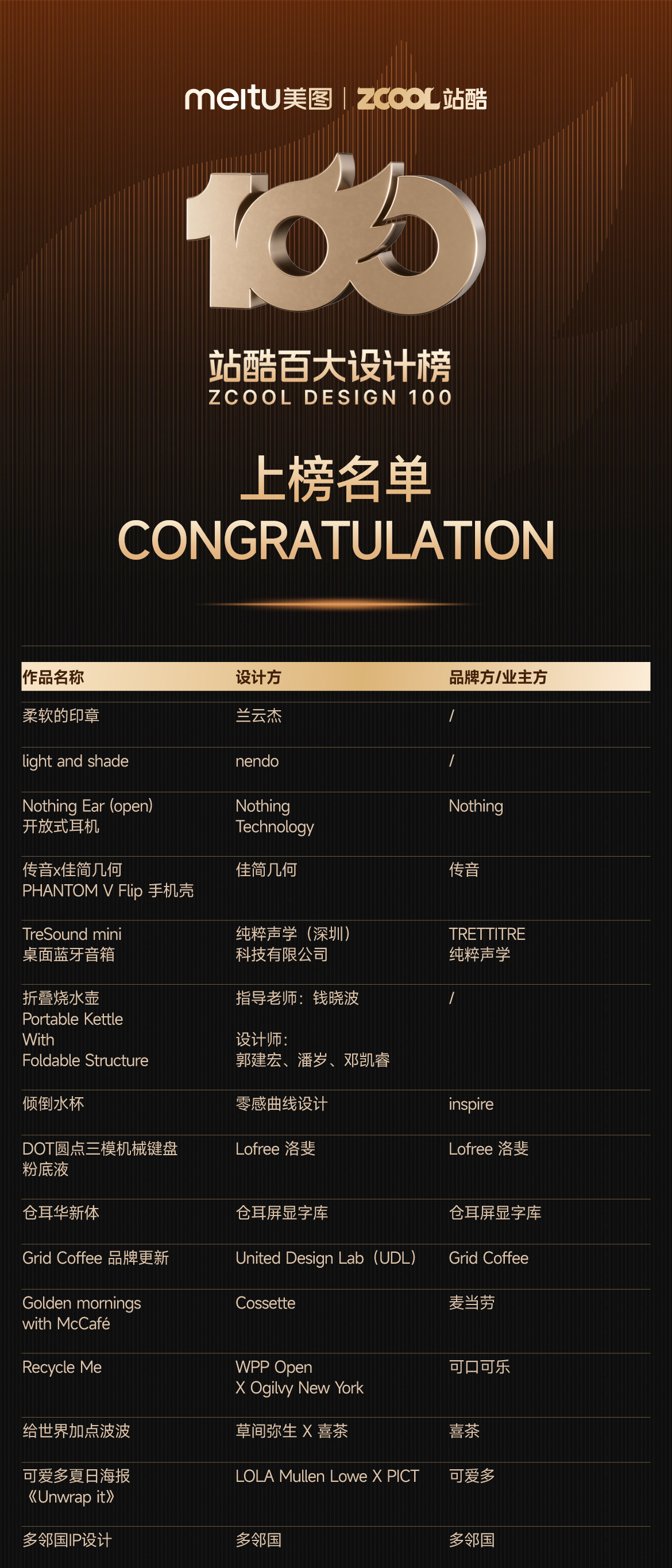 2024站酷百大设计榜是中国设计行业首个结合了全网公开提名、专业设计师举荐、平台大数据分析的年度榜单,依托站酷长期深耕的设计师内容平台,立足设计产业前沿,面向全球专业设计机构、设计团队、独立设计师、创意人士征集作品。该榜单致力于发现好设计、托举新设计,关注设计中的实用、爱、趣味、科技、文化与美好,希望通过榜单让更多人看见设计的价值和魅力。