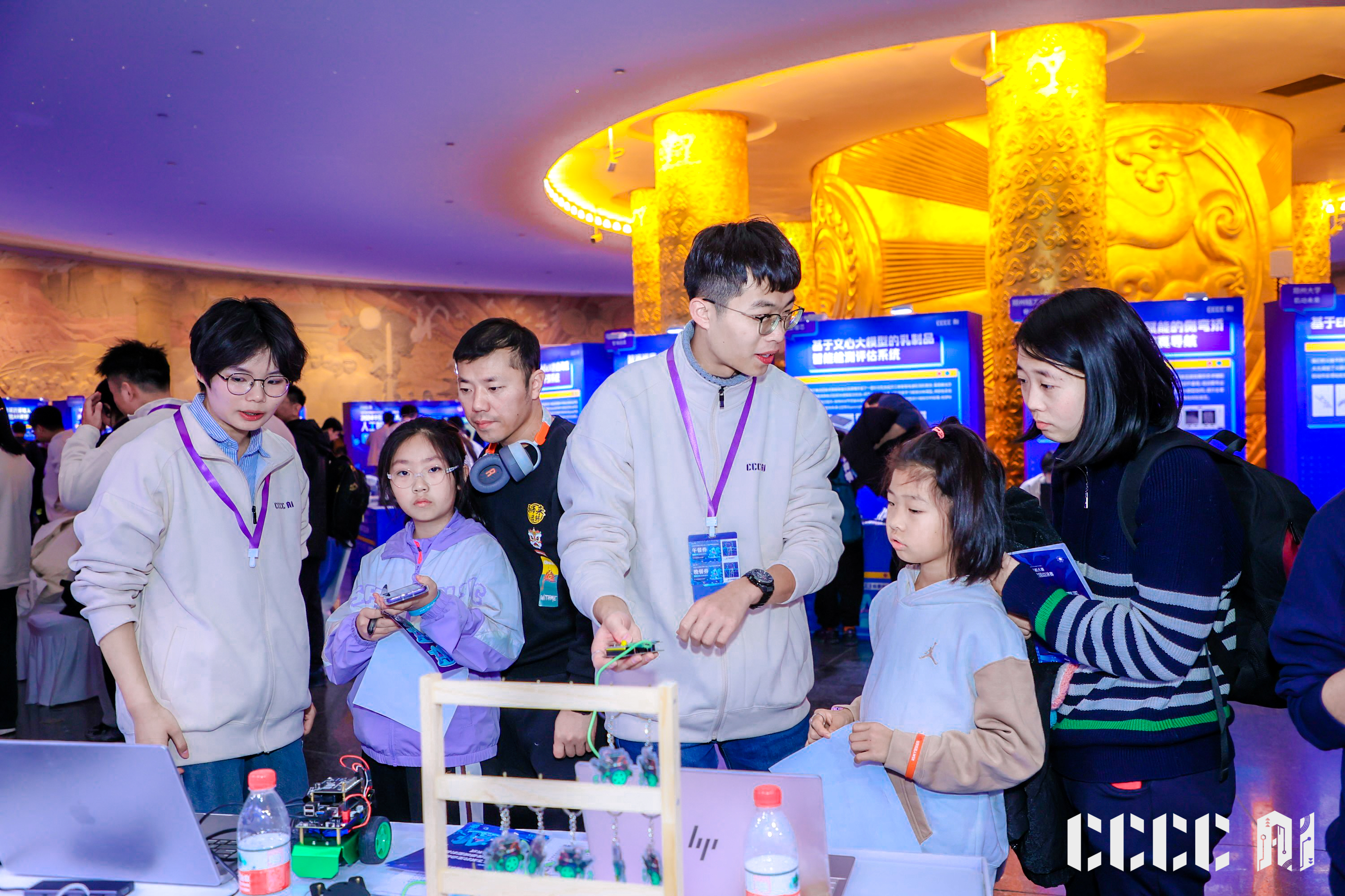 12 月 16 日,2024 中国计算机大赛-人工智能创意赛 (以下简称「C4-AI 大赛」) 在北京中华世纪坛圆满落幕。和往年不同, 今年竞赛总决赛采用了路演答辩与科普展览相结合的形式, 展出了 58 个进入总决赛的人工智能创意项目, 吸引了 300 多位北京当地的中小学生和家长前来观看, 体验了一次来自高校的人工智能大科普。
