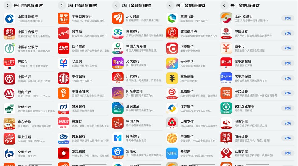 原生鸿蒙应用市场部分已上架金融理财应用