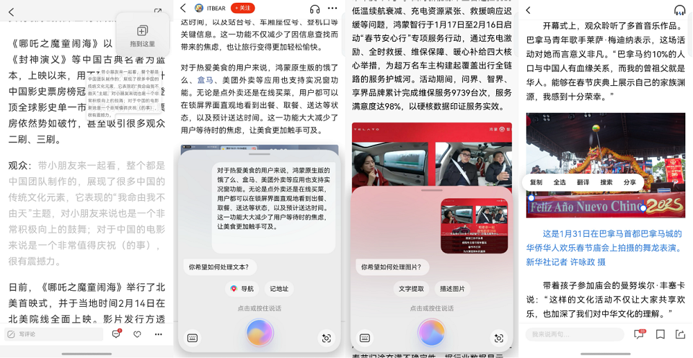 • 鸿蒙原生版的新华社、央广网目前还支持直接在图片上长按提取文字,文字识别的速度和精准度都没得说,识别后可以复制、翻译、搜索、分享,可谓一应俱全。