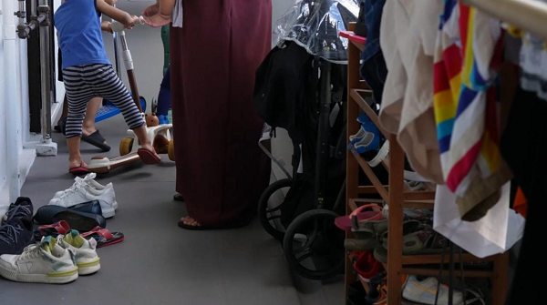 散落一地的玩具和鞋子,既是孩子们欢笑时刻的见证,也让这个空间显得有些拥挤。对此,妈妈 Hina(化名)感慨道:「我每天都要花费大量时间整理家务,但不久之后家里又变得乱糟糟的。希望我们的家能更干净明亮,让孩子们都有足够的空间自由活动。」