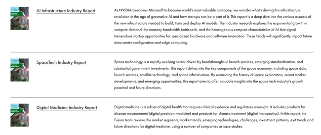 作为一家长期关注深科技和产业 AI 的技术型 VC,Fusion Fund 依托多年对前沿科技及 AI 领域的深入研究, 建立了独特的前瞻投资体系, 尤其在 AI 生态的广泛布局上具有领先优势。