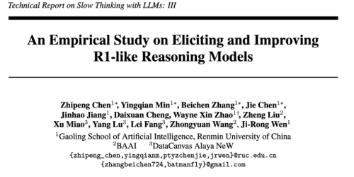 近日, 九章云极 DataCanvas 公司联合中国人民大学 STILL 项目团队、北京智源研究院团队联合在大模型慢思考推理技术上形成系列技术成果, 初步复现类 R1 推理模型, 完整开源了类 R1 类的实现细节以及训练技巧。进一步, 创新性提出使用代码工具来增强模型推理性能, 在 AIME 数学推理测试中超越 DeepSeek-R1 的模型性能。 相关成果已经形成论文《An Empirical Study on Eliciting and Improving R1-like Reasoning Models》, 在预印版论文网站 arXiv 上公开发表。