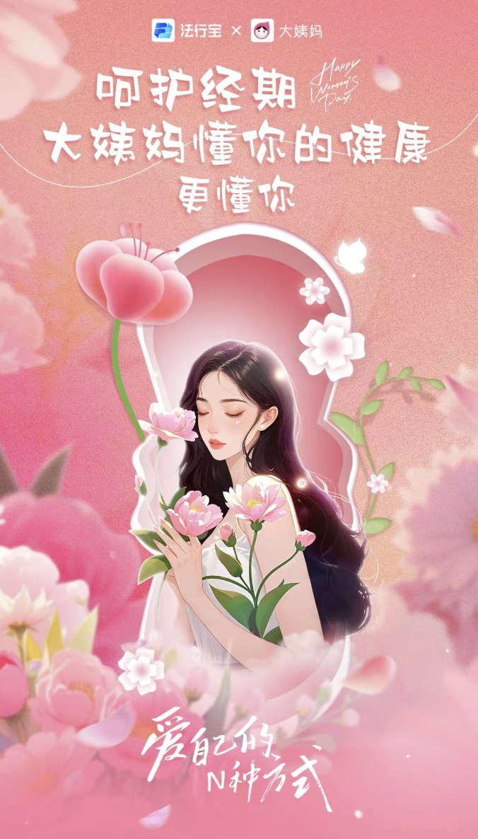 爱自己, 无疑是女性开启幸福生活大门的关键钥匙。法行宝与大姨妈 App 希望通过此次活动, 让更多女性深刻认识到关爱自身的重要性。无论是积极关注自身健康管理, 还是运用法律武器捍卫自己的合法权益, 每一种爱自己的方式都值得被鼓励和支持。只有当女性真正学会爱自己, 才能以更加饱满的热情、更加坚定的姿态去追求自我价值的实现, 在生活中绽放独特光芒。