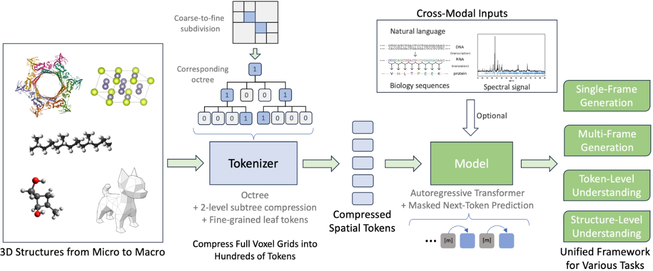 深势科技与北京科学智能研究院、北京大学,推出全球首个通过自回归下一 token 预测统一 3D 结构生成与理解的科学大模型 Uni-3DAR。