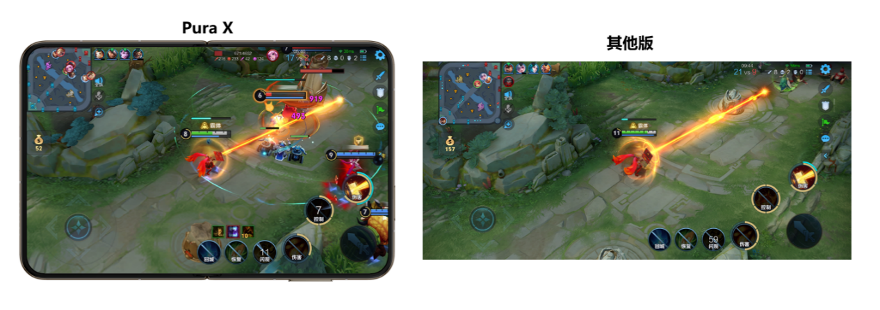 基于鸿蒙系统的特性与 Pura X 的创新形态,鸿蒙版王者荣耀在 Pura X 上为玩家带来阔感游戏体验。目前,腾讯旗下的王者荣耀、和平精英等热门游戏均已深度适配搭载鸿蒙操作系统 5 的 Pura X,带来大有不同的「阔感」游戏体验。