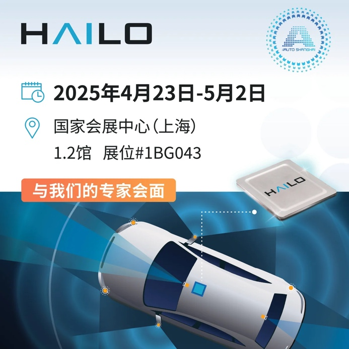 随着人工智能技术的不断发展和普及, 汽车行业正迎来前所未有的变革机遇。作为这一变革的推动者之一,Hailo 将继续秉承创新、开放、合作的理念, 不断推动人工智能技术在汽车行业中的应用与发展。此次上海车展,Hailo 将携最新技术亮相, 不仅是对我们技术实力的一次全面展示, 更是对未来出行趋势的一次深刻洞察。在此, 我们诚邀您莅临 Hailo 的展位, 共同见证这一科技盛事, 体验更加智能、安全、舒适的未来出行方式。期待与您相聚, 共绘汽车智能化转型的新篇章。