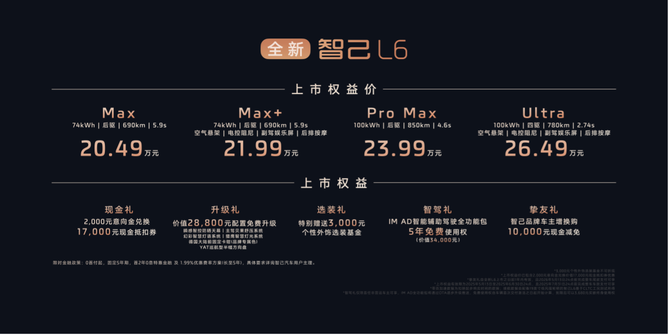 全新智己 L6 上市权益价格及权益
