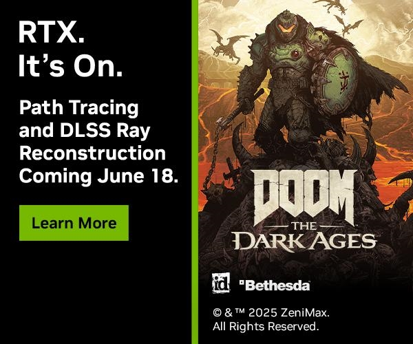 本周,FBC: Firebreak 将支持 DLSS 4 多帧生成及全景光线追踪。《毁灭战士:黑暗时代》(DOOM: The Dark Ages) 升级至路径追踪, 并支持 DLSS 光线重建, 进一步增强这款备受好评的射击游戏的图像质量。