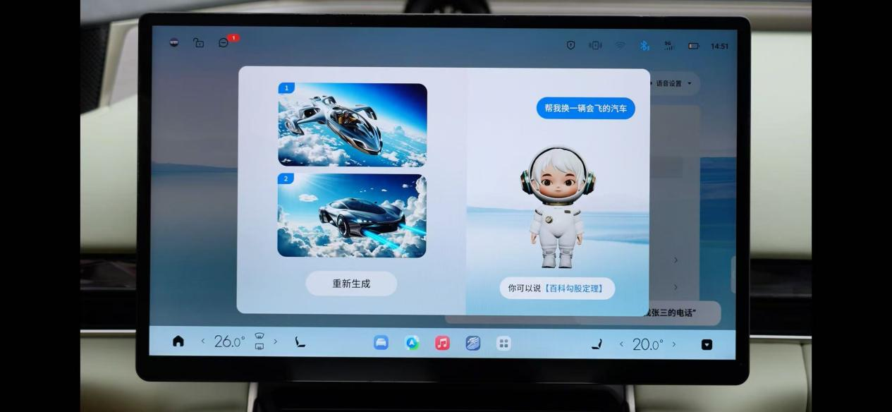 AI 创意生成,新增「文生图」功能正式上线。用户只需说出创意描述如「生成一幅赛博朋克风格的城市夜景」,系统便能即时创作专属 AI 艺术图像,并一键设为车机壁纸,座舱个性化与趣味性大幅跃升。
