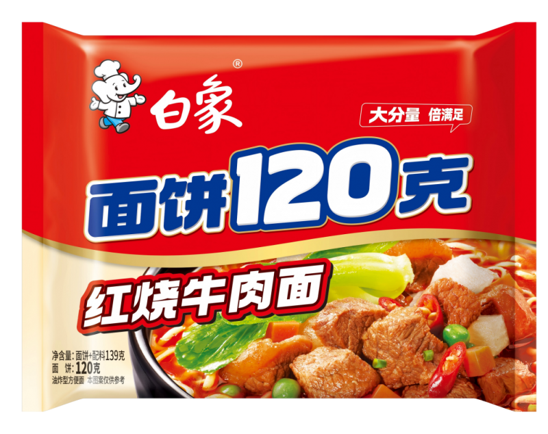 6 月 29 日,白象正式推出首款以面饼实际克重命名的大分量方便面产品——「面饼 120 克」,并实现线上电商与线下商超渠道上架。