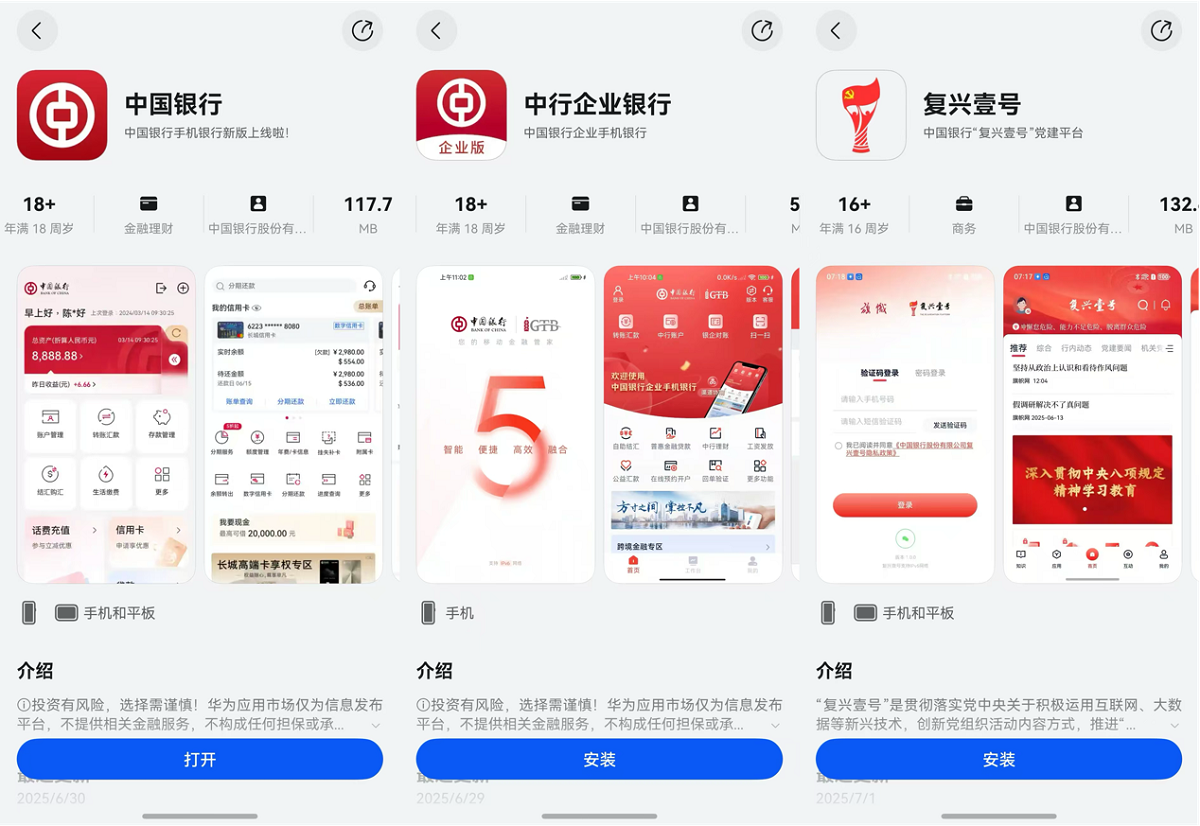 最新上架:鸿蒙版中行企业银行4 个月完成全量适配
