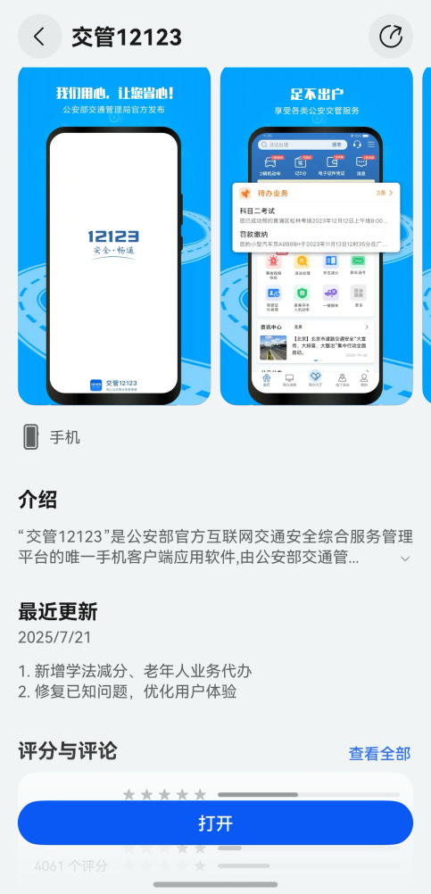 鸿蒙手机用户请注意:交管 12123 上备受好评的「学法减分」和「老年人业务代办」功能,现已正式登陆鸿蒙版,快速响应了用户高频心愿清单!