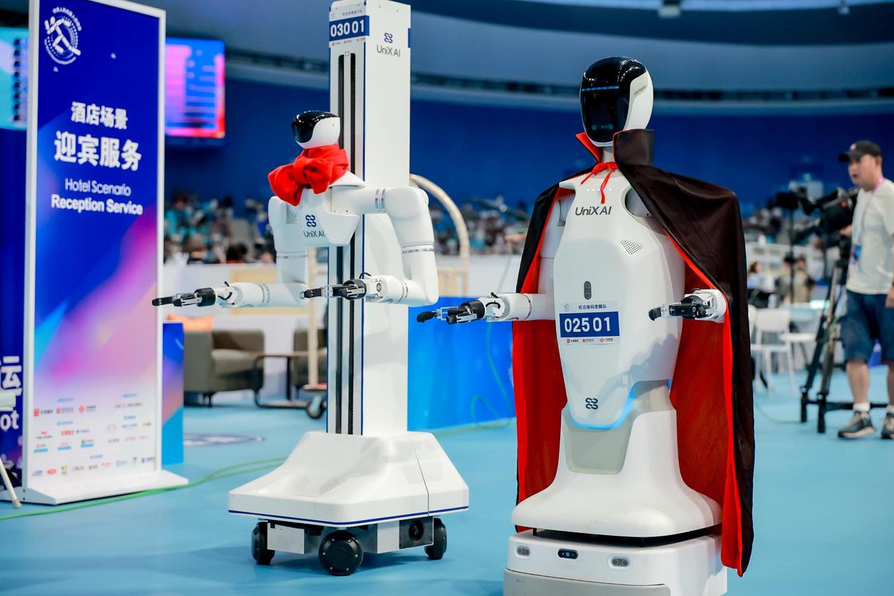 优理奇机器人以「酒店迎宾服务」和「酒店清洁服务」两枚金牌,以及一枚银牌的优异成绩,登上了机器人运动会奖牌榜前三的位置。