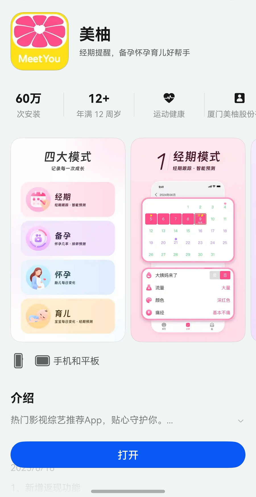 目前,鸿蒙版美柚下载量已达 60 万次,深受广大女性用户的认可与喜爱。鸿蒙版美柚的全面升级,让经期记录和孕育旅程中的每一个关键时刻都更安心。未来,鸿蒙版美柚将继续陪伴每一位用户安心度过每一段人生重要时期!