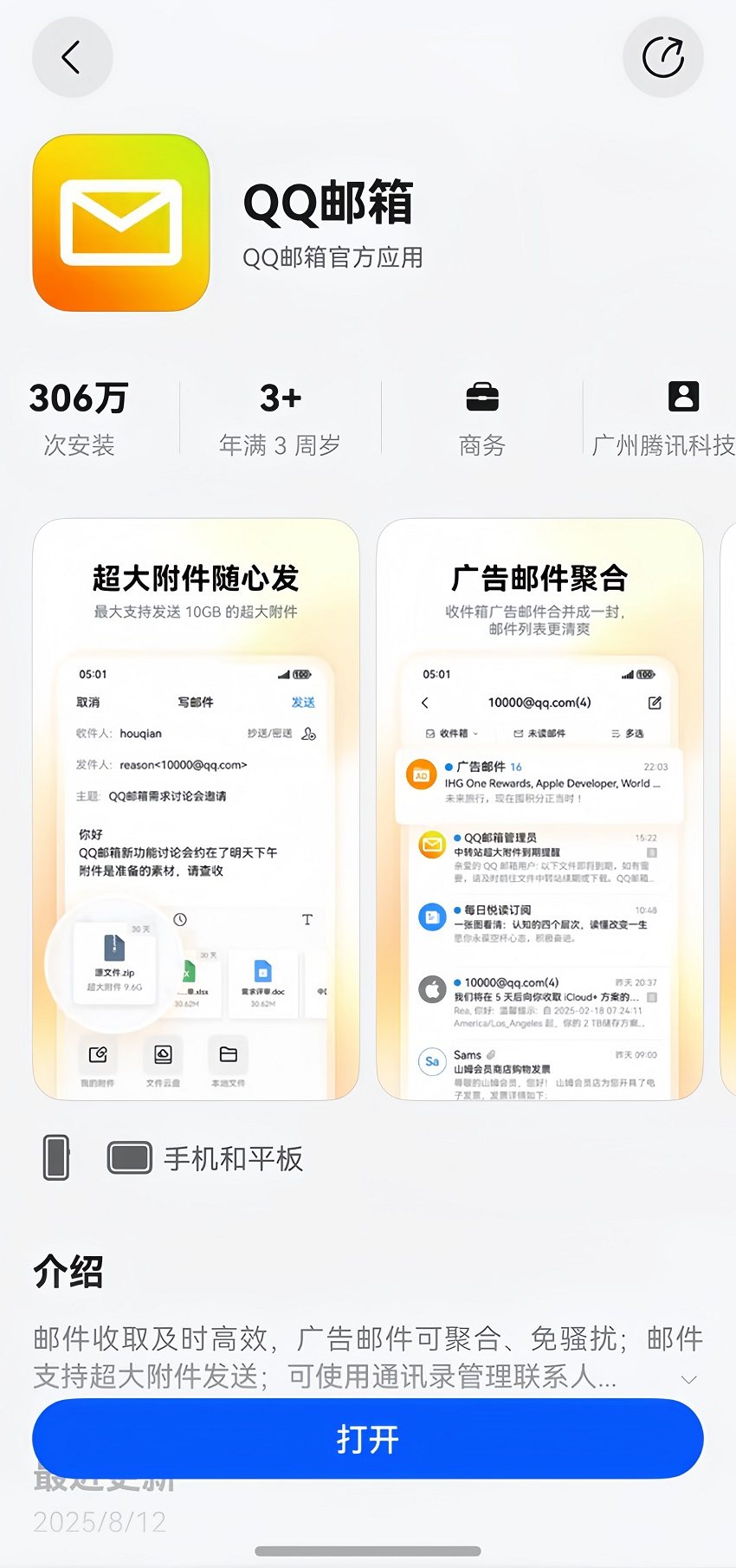 • 折叠屏浏览再升级:如果你用折叠屏手机浏览邮件,可以在不同形态下自动调整文字内容的排版,左边邮件列表右边正文,阅读、编辑两不误。