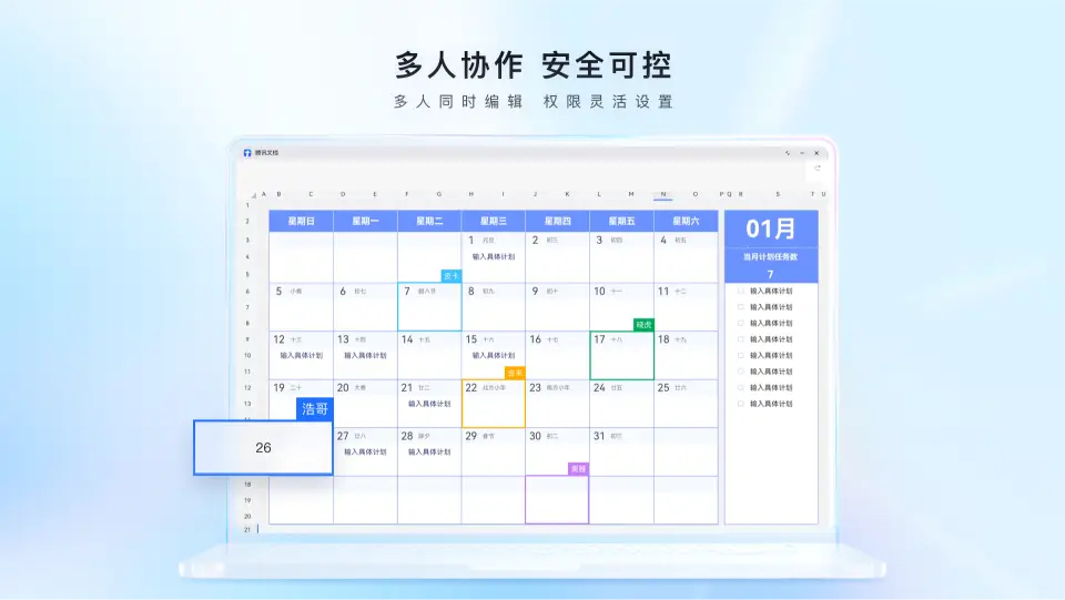 多人实时编辑,告别版本混乱:团队脑暴、项目方案撰写,都能多人同时在线编辑文档、表格和幻灯片,修改记录实时保存、清晰可见,从此告别「文件轰炸」。