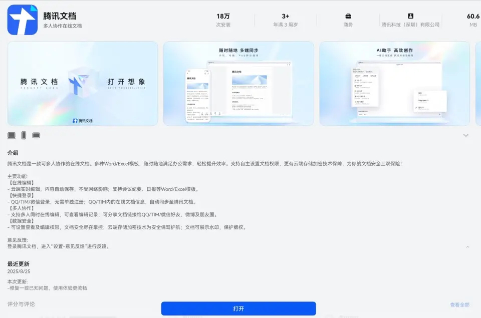 鸿蒙版腾讯文档不仅是一款文档工具,更是鸿蒙生态下,融合多端协作、AI 智能、安全可控的全能办公伙伴。快来下载体验,开启更高效、流畅、智能的办公新方式吧!