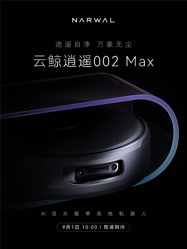 8 月 29 日,云鲸智能官方在社交平台宣布,云鲸最新高端旗舰产品逍遥 002 Max 将于 9 月 1 日正式亮相,并于当日上午 10 点同步开启全网预售。据悉,本次云鲸即将发售的逍遥 002 Max 产品 slogan 为「逍遥自净,万象无尘」,定位「AI 活水履带洗地机器人」,从所透露的信息来看,其将搭载活水履带洗地方案,为用户带来全空间极致清洁体验。