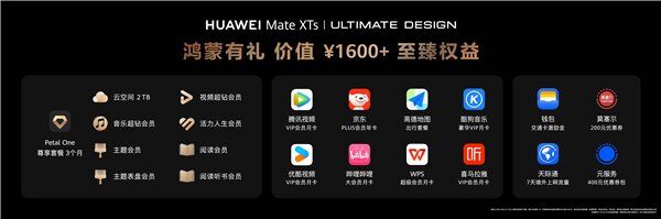 9 月 4 日,华为 Mate XTs 非凡大师及全场景新品发布会在深圳召开,华为 Mate XTs 非凡大师、华为智慧屏 Mate TV、华为 MatePad Mini 和华为 FreeBuds 7i 四款新品亮相。华为 Mate XTs 非凡大师高达 1600 元的「鸿蒙有礼」至臻权益再次成为关注焦点,包括 Petal One 尊享套餐 3 个月、腾讯视频、京东、高德地图和酷狗音乐等三方权益以及钱包交通卡激励金、元服务 400 元优惠券包等福利;此外,华为 MatePad Mini 用户也享有「鸿蒙有礼」权益,可领取包含 Petal One 悦享套餐 3 个月、芒果 TV、优酷视频、WPS Office 和哔哩哔哩等三方权益以及莫塞尔 200 元优惠券包、元服务 50 元优惠券包等。