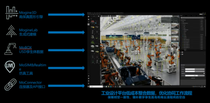 2024 年赛事后,摩泛团队迎来了与西门子的首个合作项目——西门子汽车创新中心展示项目。摩泛基于自研平台 Mogine Hub 的工业级数字孪生场景构建能力和约 60 万件数字 3D 资产库,以视觉高保真和功能高保真将整车总装线浓缩为虚实结合的数字孪生场景,并通过交互式设计实现了生产流程的可视化管理,让原本需要实地考察的设备布局与运行逻辑,能在虚拟空间中直观呈现。