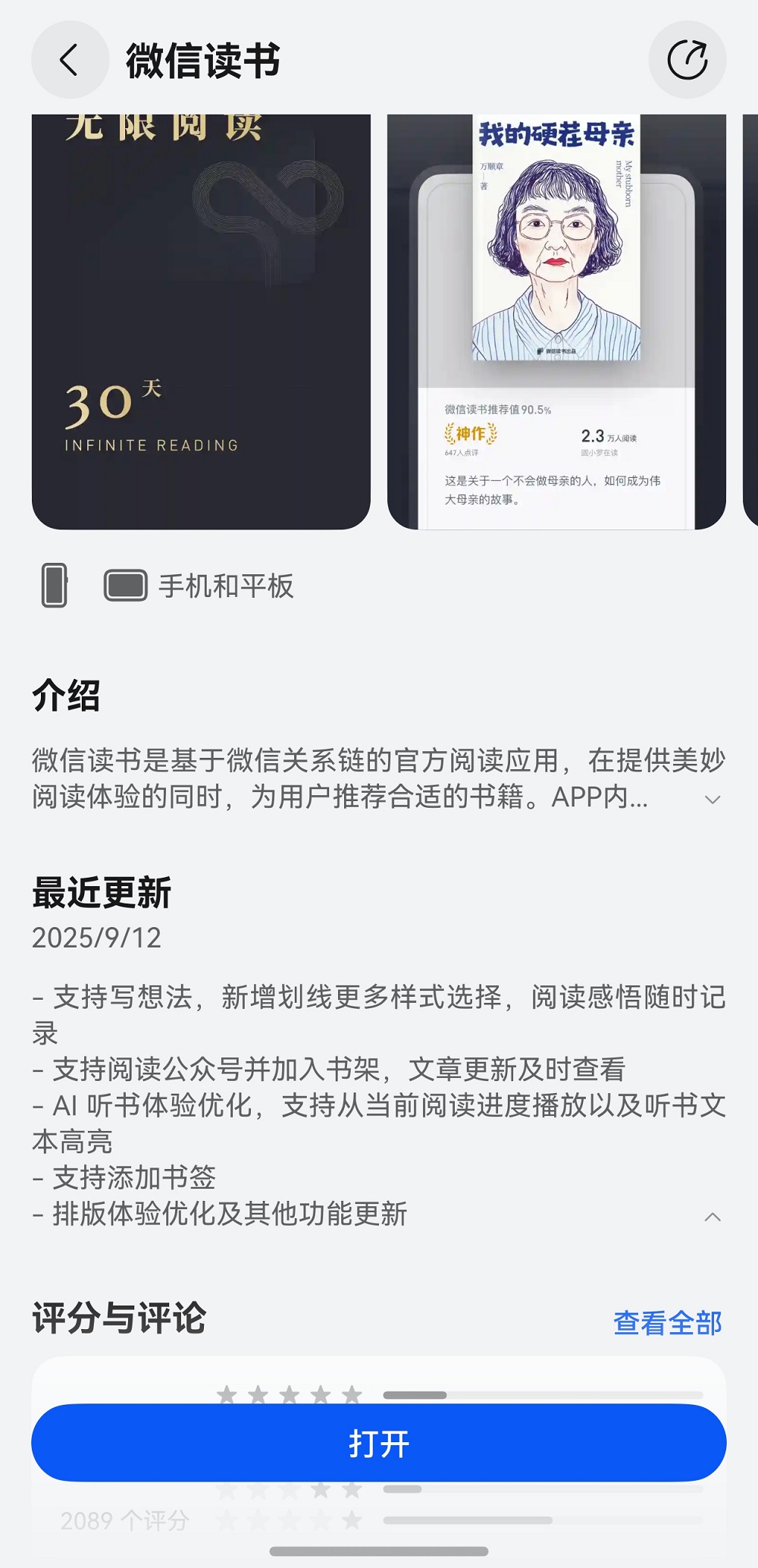 鸿蒙版微信读书此次更新精准贴合用户阅读需求,进一步提升了使用体验,欢迎前往华为应用市场更新下载!