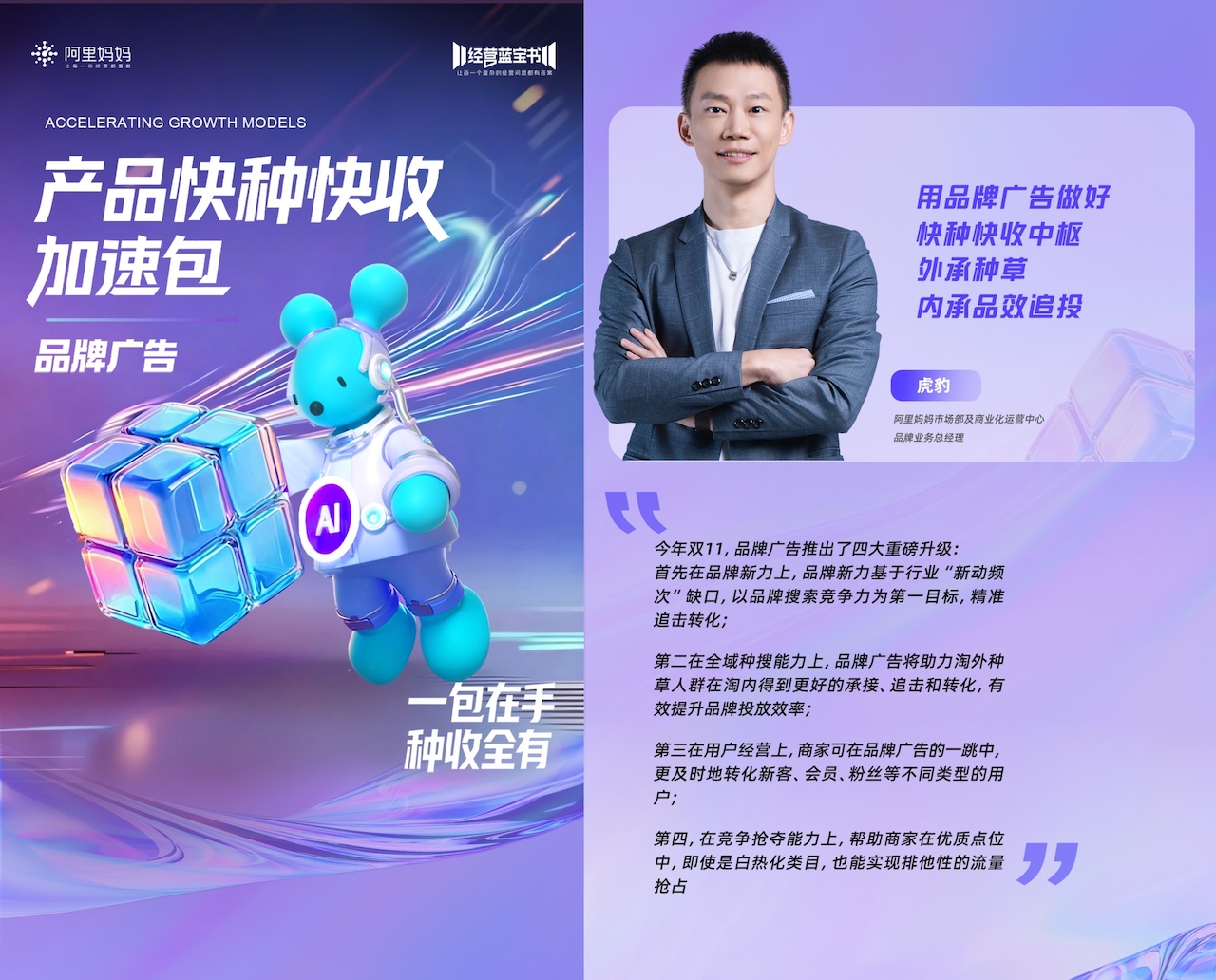 阿里妈妈经营蓝宝书产品篇——产品快种快收必赢加速包,就为你带来双 11 品牌广告的独家投放攻略,让你一包在手、种收全有,质赢双 11 全周期增长!