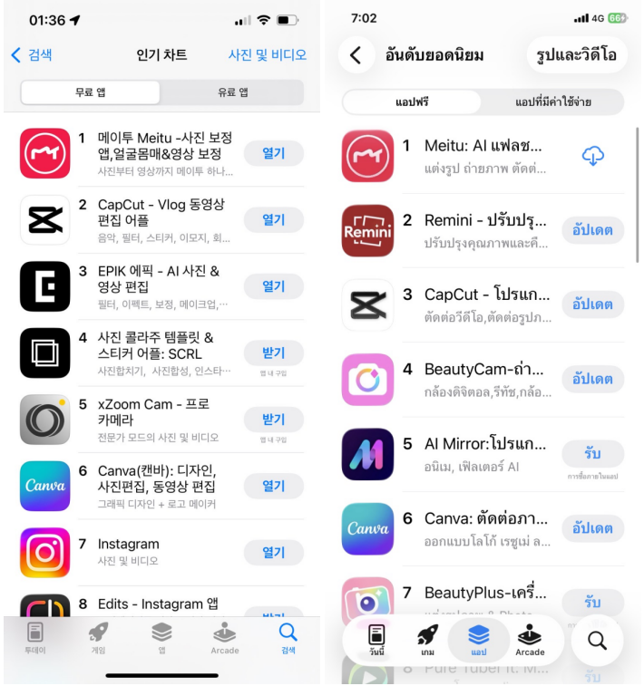 应用商店实时数据显示,美图秀秀再次凭借 AI 创新玩法走红海外。「拍立得合影」「电梯合拍」、「红格合拍」等年轻人喜爱的功能,助推美图秀秀登顶韩国和泰国 AppStore 分类榜,目前已在韩国连续霸榜 5 天,在泰国连续霸榜 10 天。