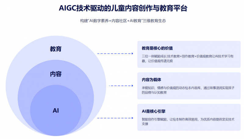 在接受阿里云官方巡展直播采访时,创始人曾志龙表示:「我们以 AI 绘本创作为导向,激发用户的创作热情,通过内容社区沉淀教育价值,最终将创作实践中积累的方法论系统化输出,赋能 AI 教育教学场景。这三个层次相互支撑、层层递进,形成了从创作到教育的完整闭环,让 AI 教育清晰可见,让价值观教育传递无痕。」