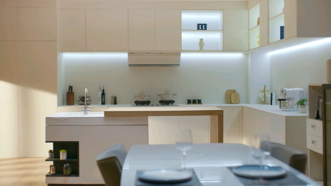 首先,通过高颜值、真平嵌,重构厨居美学。传统烟机不但体积厚重,外凸的机身还容易造成空间压抑,用户转身时也容易磕磕碰碰。对此,卡萨帝小炫风 Max 烟机打造了「真平嵌」解决方案。350mm 超薄机身深度能与吊柜完全齐平,不凸出、不碰头,且顶部不留空隙,避免了落灰困扰,105°黄金翻板角度还能精准拢烟、避免遮挡视线。同时,这款烟机还突破了传统安装限制,支持 700mm–850mm 宽幅高度调节,可适配不同高度的吊柜。博卡灰高级配色与肤感磨砂玻璃面板的组合,既呈现高级质感,又便于打理,可轻松融入多元厨居风格。
