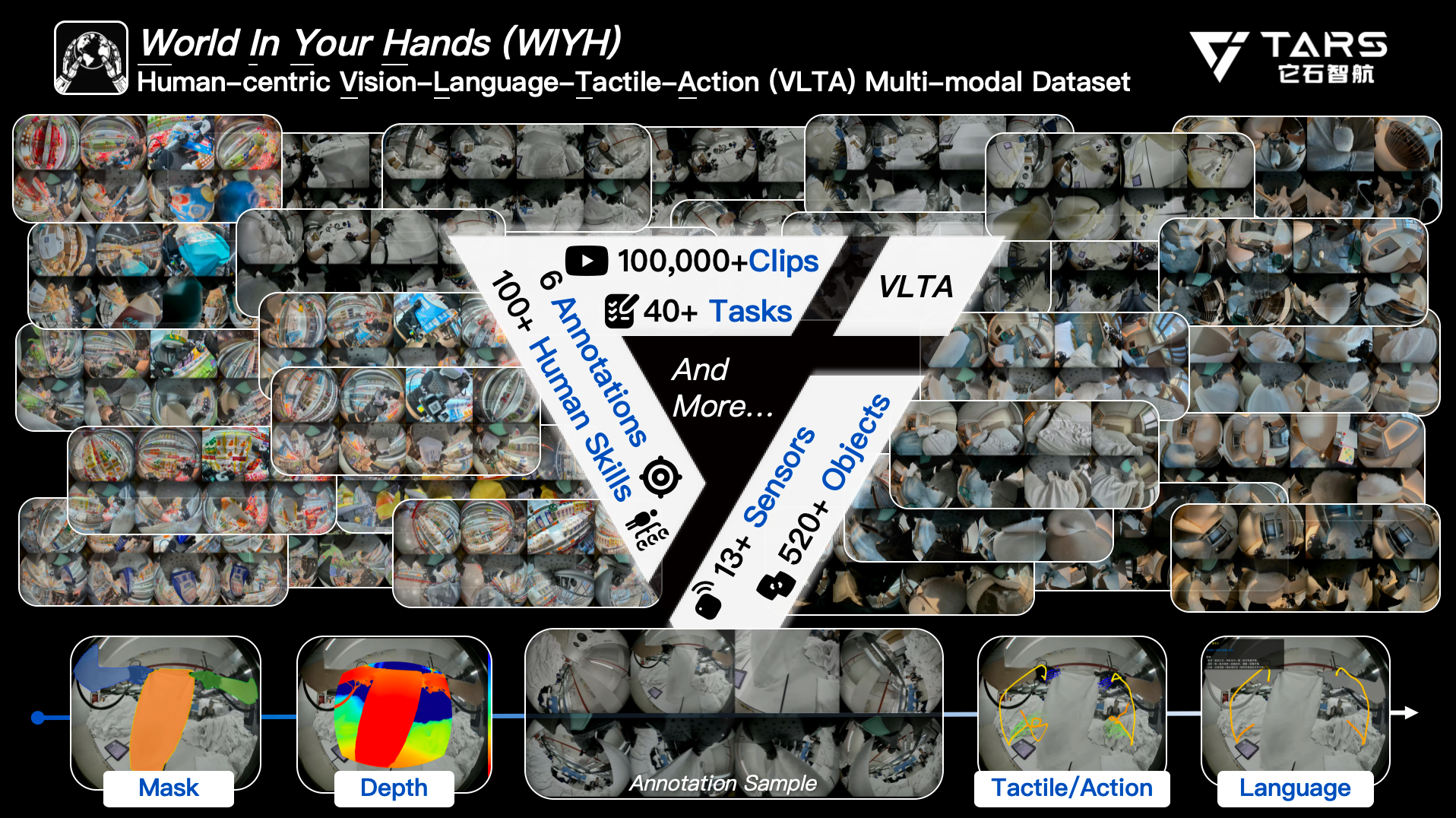 具身智能行业即将迎来数据革命。10 月 10 日,它石智航重磅发布全球首个大规模真实世界具身 VLTA(Vision-Language-Tactile-Action)多模态数据集 World In Your Hands(WIYH),并计划于 2025 年 12 月面向行业共享开放。这项成果标志着它石智航在行业首创的以人为中心的(Human-Centric)具身数据引擎新范式正式确立,这一技术路线比特斯拉 Optimus 还要领先大约六个月。