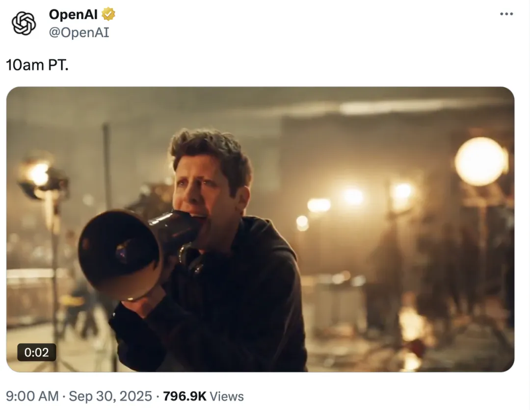 直到现在,Anthropic 发布 Claude 新模型或其他研究成果,OpenAI 也会迅速跟进或发布新功能。比如 Claude Sonnet 4.5 发布,话题还没发酵一天,Sam Altman 就官宣 Sora 应用上线,这种「抢风头」并非偶然。