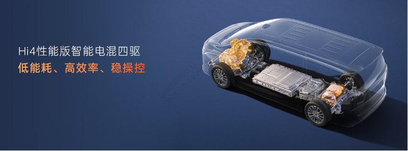 该车全系标配 Hi4 性能版智能四驱电混系统,是 30 万以内唯一标配智能四驱的 MPV 车型 。这套系统的综合最大功率达到 337kW,峰值扭矩 644N·m,能驱动这台 MPV 在 5.7 秒内完成零到百公里加速 ,动力表现足以媲美一些大排量 V8 发动机 。毫秒级的扭矩分配能力,不仅能在雨雪湿滑路面提供更强的抓地力和安全性,也能在高速过弯或需要快速并线时,给予驾驶者充足的信心 。