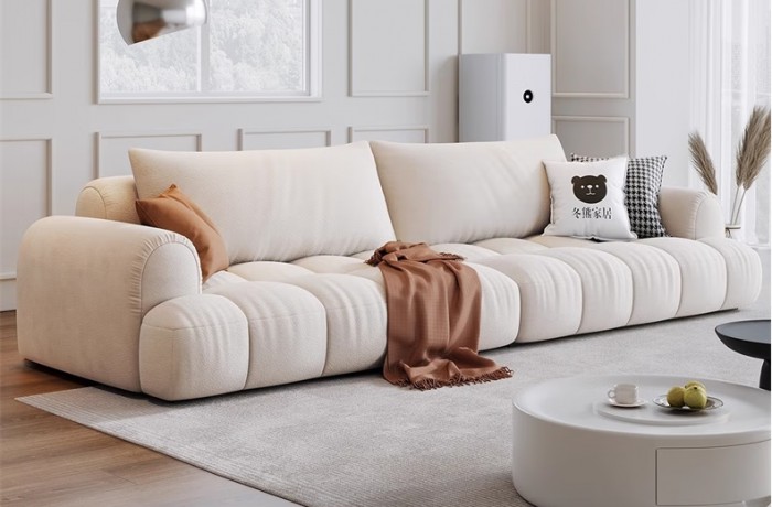 当然,选沙发也有大学问。我推荐的这款冬熊法式轻奢沙发以「云朵美学」为灵感,用 700g/㎡的高密度猫爪牛奶绒面料,触感如羊绒般细腻,久坐也不易塌陷,让每一次落座都像是被云朵包裹。