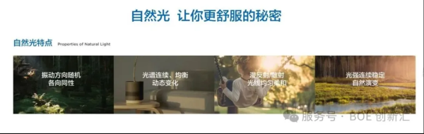 京东方「自然光」显示技术(BNL),通过振动调节、光谱优化、光形优化、时变适配四大途径,复刻自然光中健康与视觉舒适的有益特性。