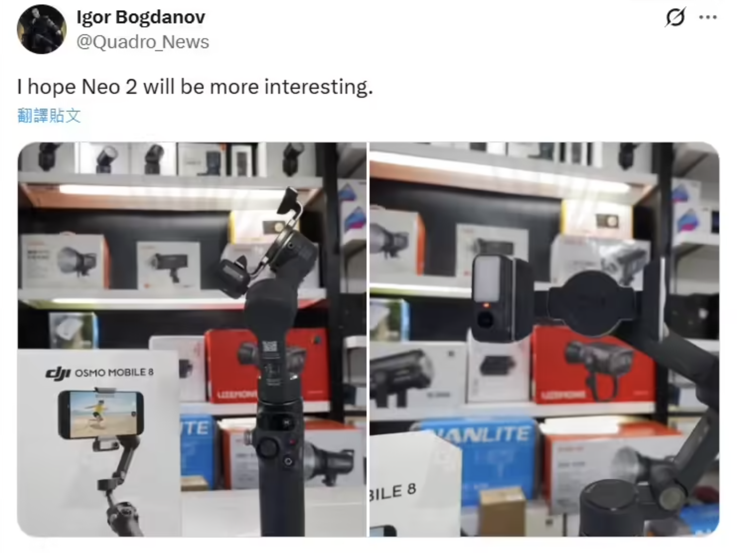 10 月 17 日消息,消息人士 Igor Bogdanov 在 X 平台发文,曝光大疆 Osmo Mobile 8 手机稳定器的实拍图及包装盒。