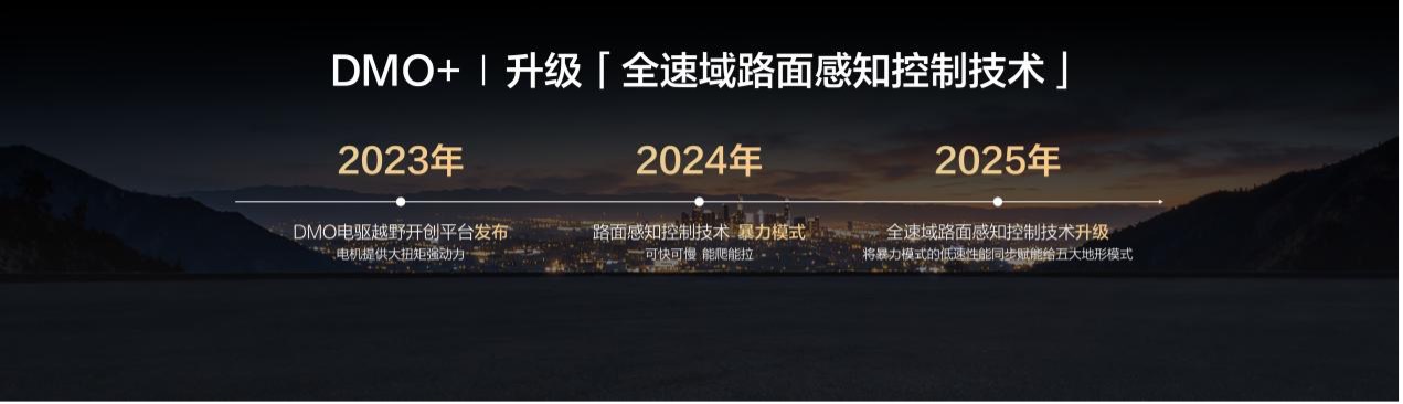 豹 5 长续航版和豹 8 大五座版上市即搭载 DMO+平台,现有的豹 5、豹 8 用户也将通过 OTA 升级至 DMO+平台。该平台首发搭载「全速域路面感知控制技术」,在路面感知控制技术基础上升级「全速域」,车辆的扭矩输出和精准控制不再受速度、地形等工况的影响,让豹 5、豹 8 不再只限于暴力模式,无论是沙地、泥地、岩石等各类地形模式的各种车速下,轮端的抓地力都会变得更稳、更准,动力输出以及驾驶稳定性都会显著提升,大幅降低了越野驾驶的操作门槛,让用户玩沙更自如、爬坡更安全、脱困更从容,轻松享受专业级越野体验。