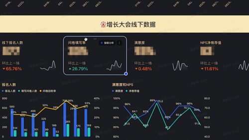 场景三:直播数据复盘「大屏化」,全流程洞察「实时可触」 。针对线上线下融合业务的数据割裂问题,飞书为得到搭建「直播数据复盘大屏」,整合用户报名、直播互动、线下活动及满意度数据,通过仪表盘实时呈现观看峰值、转化率、用户地域分布等核心指标,并支持数据穿透查看明细。「过去复盘需要 3 天整理数据,现在直播结束 2 小时就能拿到分析报告,决策效率提升 80%。」得到直播运营负责人表示。